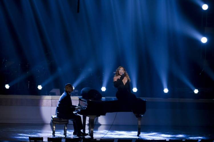 Певица Мэрайя Кэри давно славится особенными нарядами, которые наглядно обнаруживают ее женственность. Не стал исключением и воскресный концерт, во время которого Мэрайя стала перед зрителями в черном вечернем платьице с очень откровенным декольте.