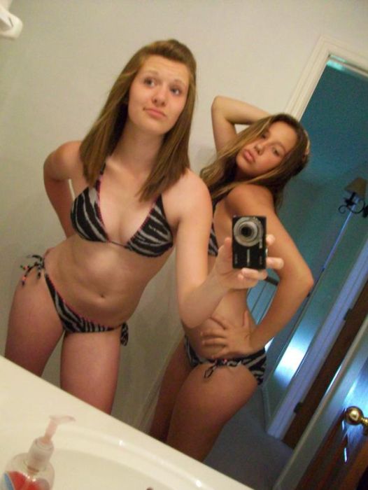 Девушки фотографируют себя в зеркале