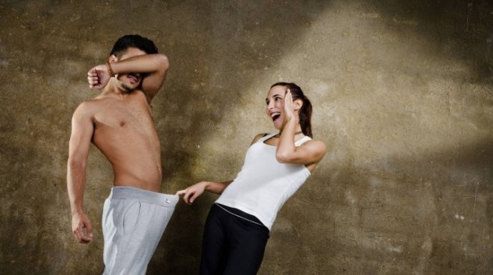 Пара в майках и трусах.