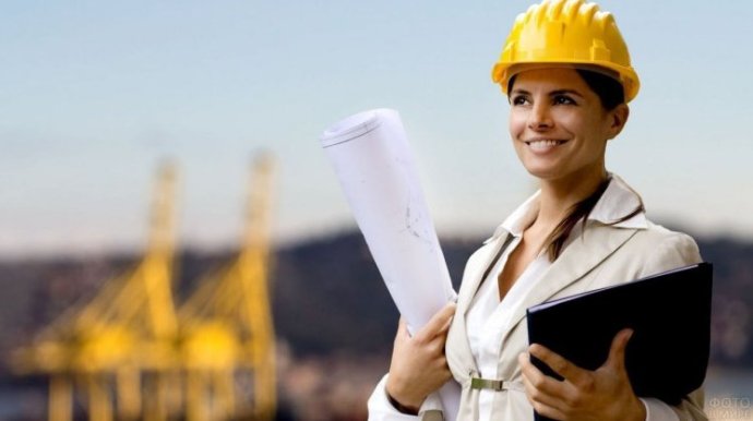 Красивая дама на заводе.