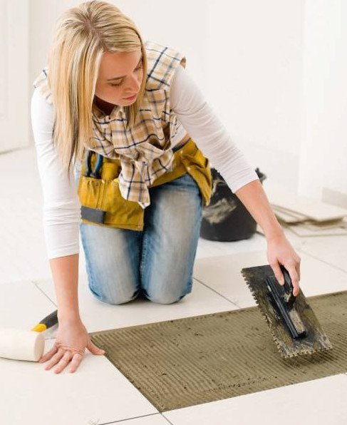 Красивая дама плиточник.