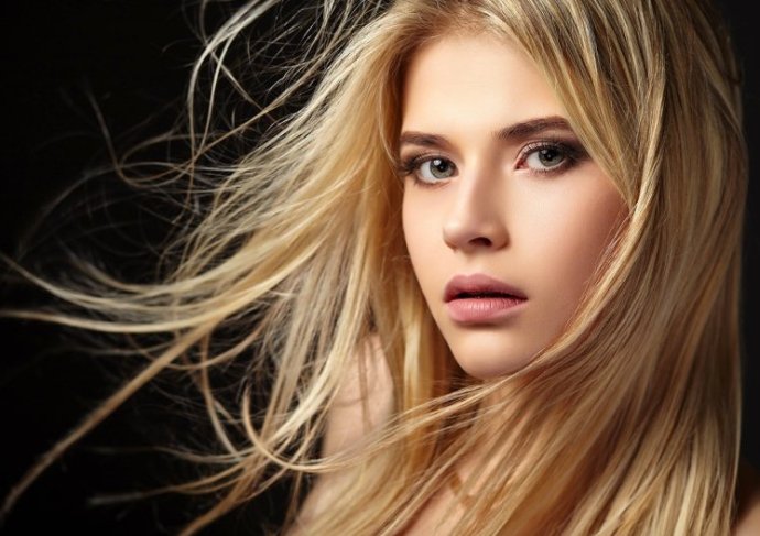 Прекрасная женщина с распущенными светлыми волосами.