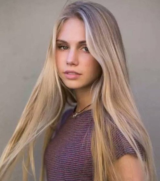 Блондиночка с прямыми волосами.