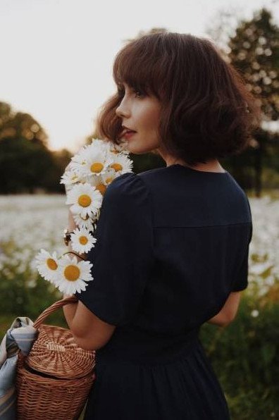 Прекрасная дама с цветами в волосах.