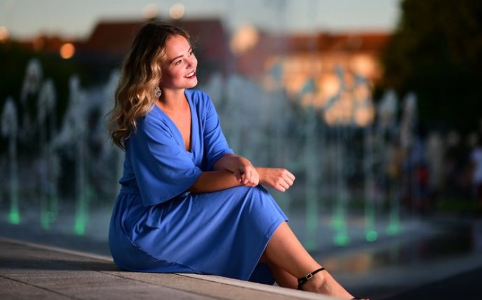 Красивая женщина в прекрасное платье посиживает.