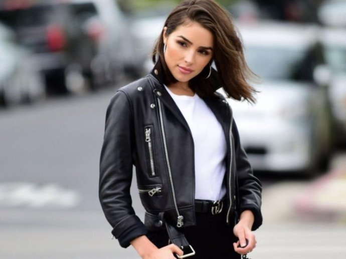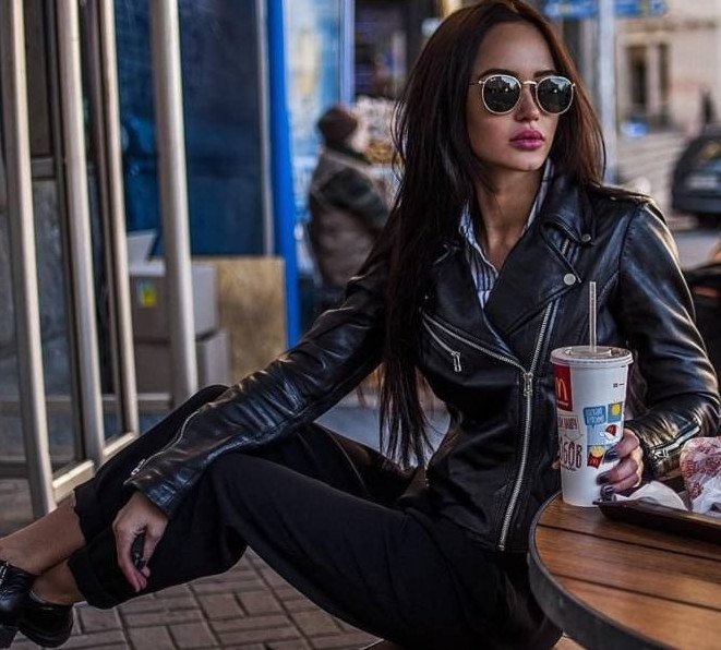 Виктория Одинцова в косухе.