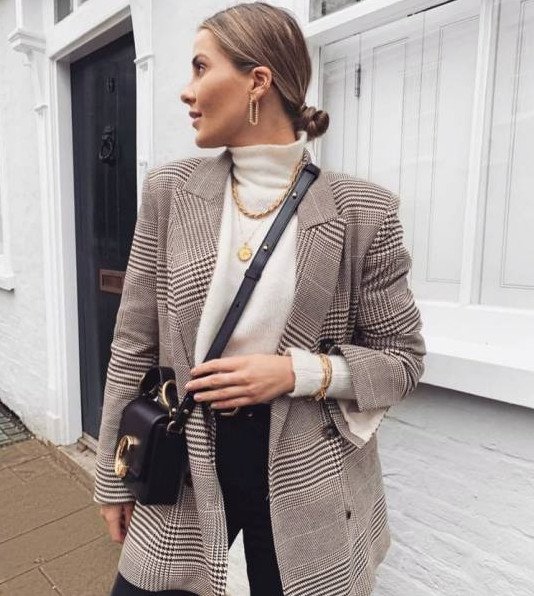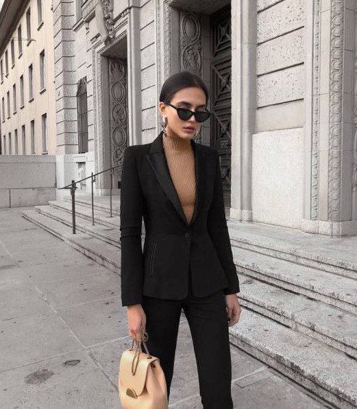 Брючный костюм с водолазкой.