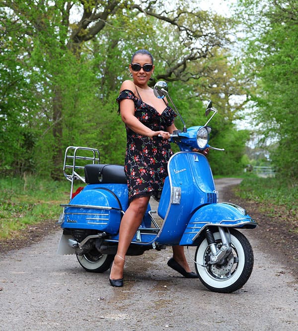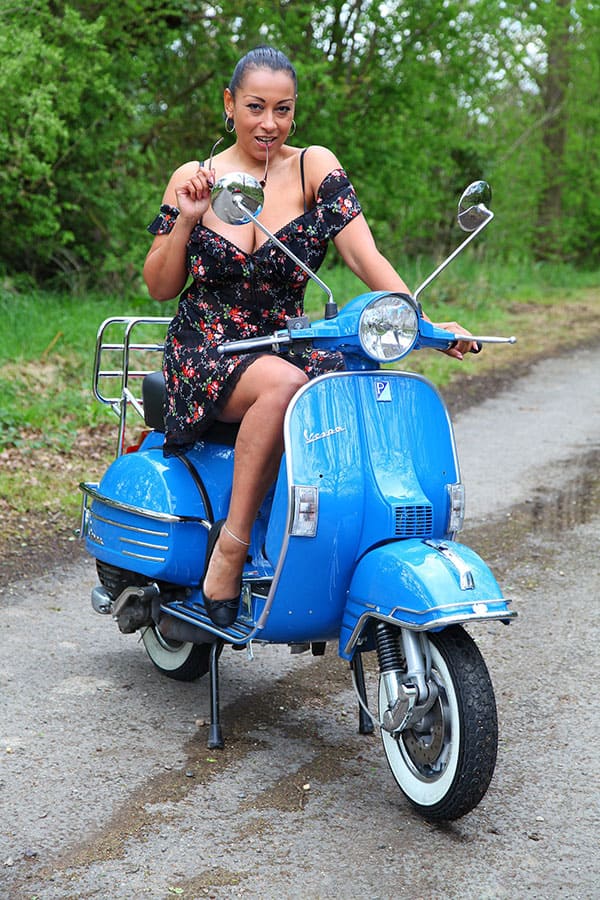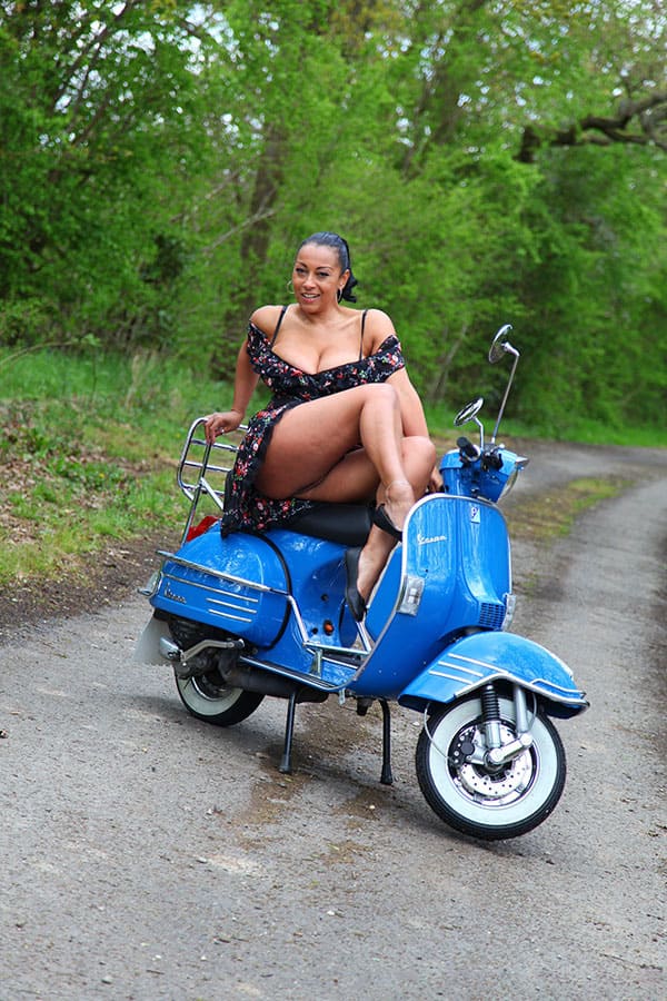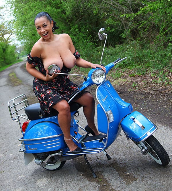 Голая чернокожая женщина на мотороллере