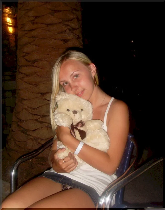 Ох, эта девушка, как она обнимает мишку! И какие сексуальные трусики выглядывают из-под юбочки... Сложно поверить, что это фото домашние, Вике всего 23 года. Красотка такая невинная, но как же хочется потрепать её попку. На следующих снимках Вика переодевается всё вызывающее, подстрекая к жаркому сексу. Ее ножки в черных чулочках просто бесподобны!