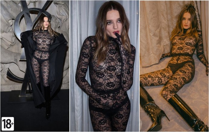 Алексис Рен (Alexis Ren), американская модель, позирует в прозрачном платье.