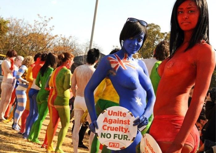 Активистки движения PETA устроили в ЮАР голый протест за отказ от использования натурального меха.